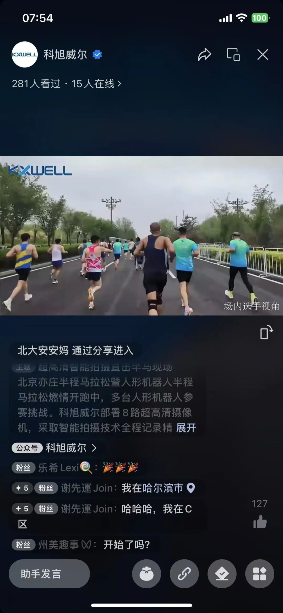 2025Apri 亦庄半程马拉松 你知道今年亦庄马拉松有什么特别的吗? 在这场赛事中,科旭威尔以创新的智能拍摄技术为核心,重新定义了马拉松赛事的记录与传播方式,让每一位普通跑者都能享受“专属主角”的体验。 什么是智能拍摄? 智能拍摄是通过融合高清影像采集、人工智能(AI)算法及云计算等技术,实现自动化、精准化的影像记录与处理系统。本次的赛事伙伴“科旭威尔云拍摄系统”核心在于: 多机位协同:通过部署多路高清摄像机,覆盖赛事全场景,更多角度捕捉动态画面; · AI智能识别:利用人脸识别、动作追踪等技术,精准定位每位参赛者,实时分析并标记关键画面; · 云端自动剪辑:基于算法自动筛选精彩片段,生成个性化短片,大幅降低人工剪辑成本; · 实时直播与分发:通过高速网络将赛事画面同步传输至云端,支持即时内容分享。 这一技术体系不仅提升了影像记录效率,更让普通用户能够轻松获得专业级的内容体验。 科旭威尔如何用智能拍摄助力马拉松? 1. 技术落地:从“精英专属”到“人人高光” 传统马拉松赛事中,镜头往往聚焦于少数精英选手,而普通跑者的精彩瞬间易被忽视。科旭威尔为此提供了8路超高清摄像机,沿赛道全程部署,如同“智能之眼”实时捕捉每位选手的飒爽英姿。结合AI云拍摄系统,参赛者的表情动作被智能识别后,系统自动剪辑生成30秒左右的专属短片。跑者完赛后仅需扫描二维码,即可一键下载这段“私人订制”的奔跑记忆。这一创新彻底打破了“镜头稀缺性”,让每位参赛者都能拥有被记录、被看见的权利。 2. 直播升级:科技打破时空限制 通过多机位画面切换,将赛事盛况实时传递至全球观众。智能系统还根据现场情况,自动捕捉精彩瞬间,让亲友团远程“云助威”。这种技术不仅扩大了赛事影响力,更增强了观众的沉浸感与参与度。 3. 技术基因:从跑步到研发的科学精神 亦庄马拉松的实践表明,智能拍摄技术正在重塑体育赛事的体验模式: ·普惠性:技术让广大群众的高光时刻都被记录 ·行业标杆:为大型活动提供可复制的技术解决方案,推动智能拍摄产业化发展 科旭威尔通过智能拍摄技术,为亦庄马拉松注入了“科技温度”,让体育回归大众,让技术服务于人。当人形机器人与人类跑者并肩驰骋,当AI镜头为每位选手定格笑容,这场赛事不仅见证了体育精神的绽放,更展现了科技如何以人性化的方式,赋能每一个平凡而闪耀的瞬间。未来,智能拍摄技术或将引领更多行业突破边界,创造无限可能。
